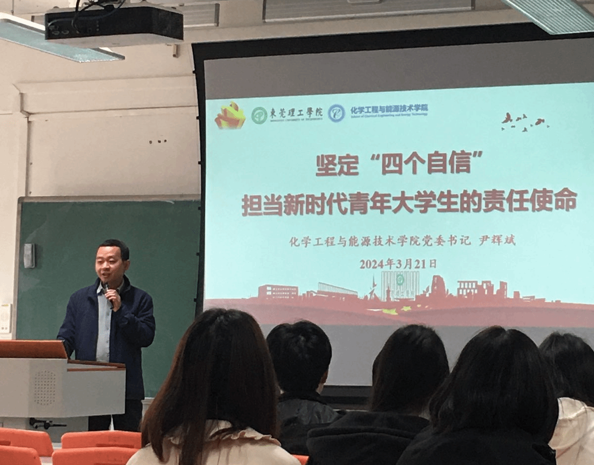 2024年3月21日上午,我院党委书记尹辉斌在松山湖校区7B209教室为2023级能源与动力工程专业本科生讲授“思政第一课”。尹辉斌以《坚定“四个自信”,担当新时代青年大学生的责任使命》为题与在场学生展开交流。