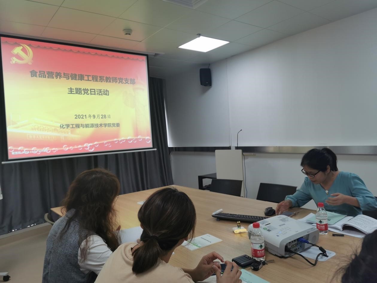 2021年9月28日,9999js金沙老品牌食品营养与健康工程系教师党支部在科创院3楼食品平台会议室开展九月份主题党日活动暨纪律教育、师风师德学习,食品系教师党员参与了此次活动。