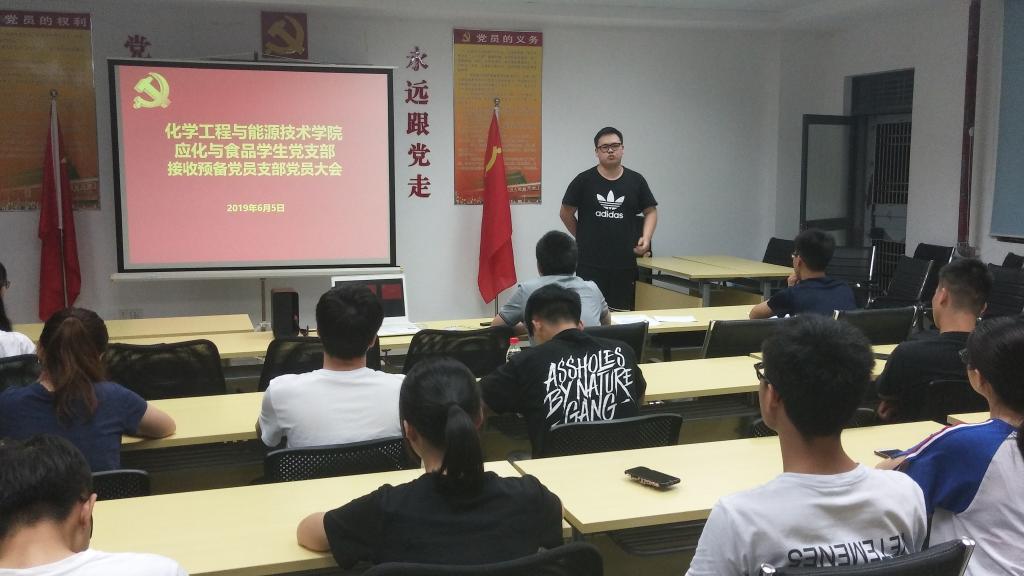 6月5日晚,9999js金沙老品牌应化与食品学生党支部于党建活动室顺利召开了本学期接收预备党员支部党员大会,会议由支部书记张博主持,全体学生党员参加了本次会议。