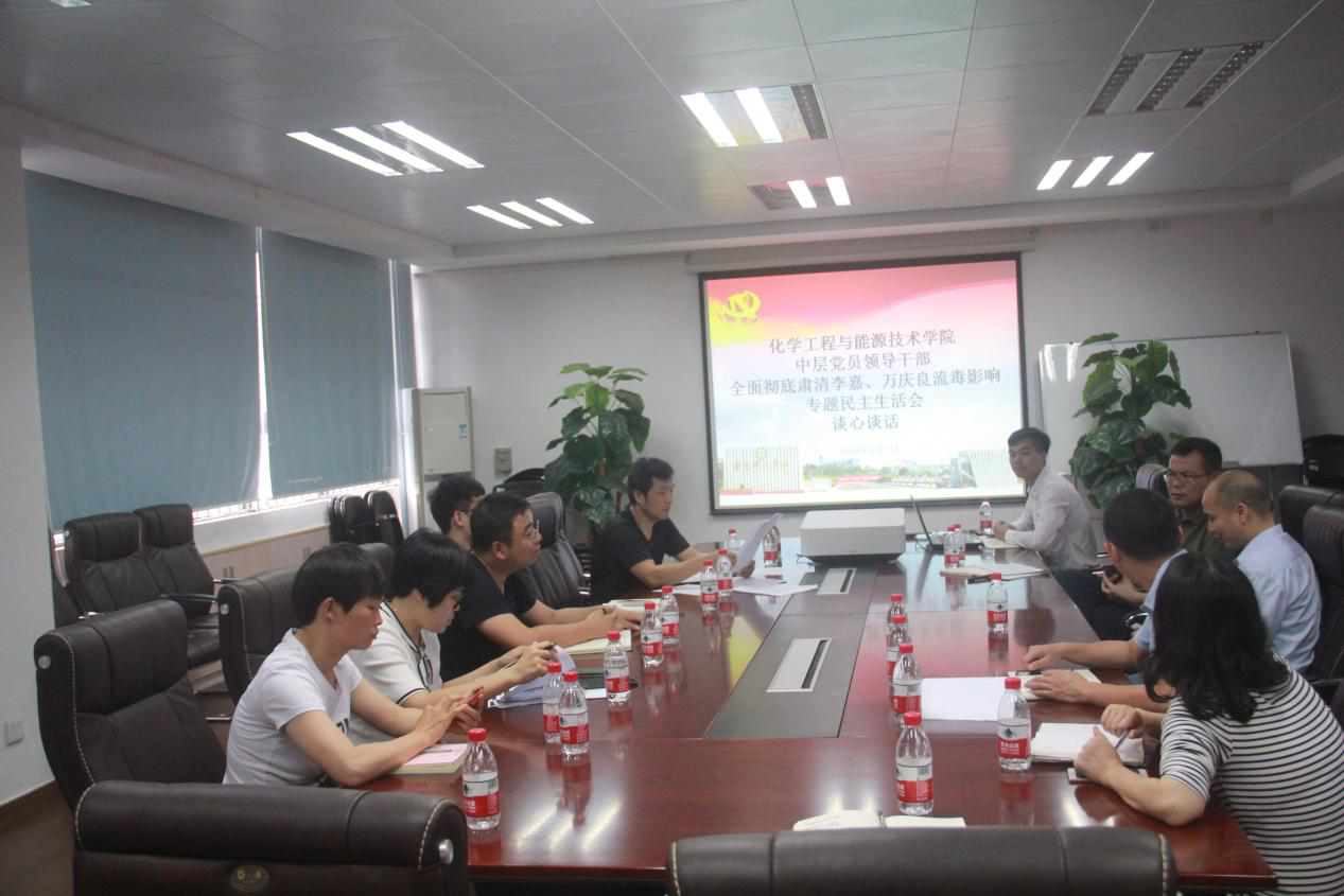 2018年6月7日上午11点,我院于12L103会议室召开领导班子成员全面彻底肃清李嘉、万庆良流毒影响专题民主生活会谈心谈话活动。我院党总支书记君光,院长徐勇军等班子成员及各党支部书记参加此次谈心谈话活动。