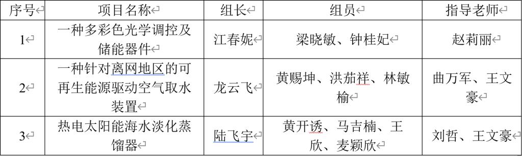 国赛获奖项目及师生团队名单